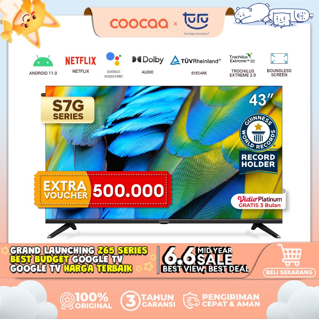 COOCAA 43 inch Smart TV - Digital TV - Android 11 - Netflix/Youtube - Google Assistant - Dolby Audio - Mirroring - Flicker Free - Boundless - HDR 10 - WIFI - USB/LAN(COOCAA 43S7G)